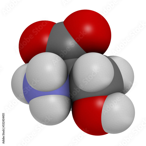 D-serine amino acid molecule. Enantiomer of L-serine, 3D rendering.
