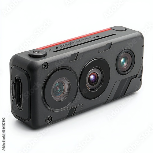 Dual-lens waterproof action camera with modern design for adventure and outdoor filming applications