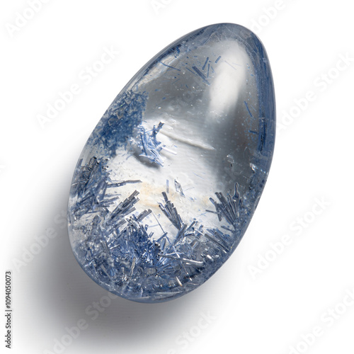 Dumortierite in quarts.Beautiful stone isolated on white background.