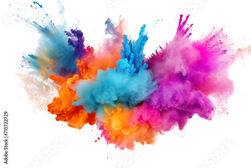 Dust explosion with rainbow powder. Abstract powder paint, splash paint, explosion texture, cloud creative dust, wallpaper concept. Design of rainbow smoke ink. Isolated White Background