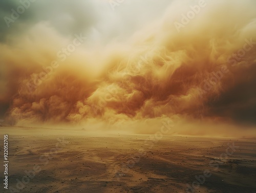 Dust storm engulfs a desolate landscape under an overcast sky during late afternoon