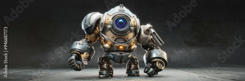 Dynamic 3D Illustration of a Mechanical Enforcer in a Striking Front View