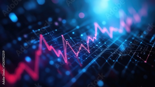 Dynamic Abstract Data Visualization with Pink and Blue Waveforms