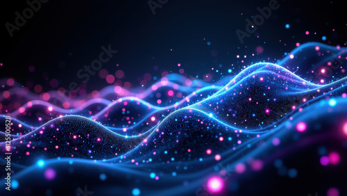 Dynamic abstract digital art with vibrant waves of light and energy, perfect for futuristic concepts or high-tech backgrounds.