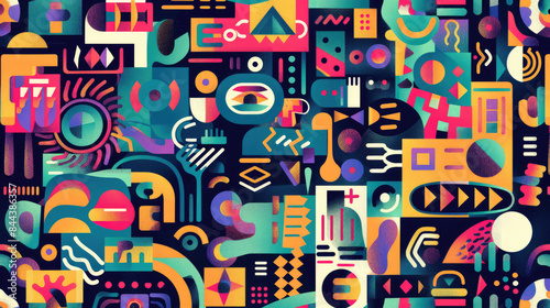 Dynamic Abstract Geometric Collage Seamless Doodle Pattern