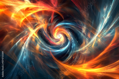 Dynamic abstract spiral with swirling blue and orange light trails, symbolizing energy, motion, and creativity, perfect for futuristic and innovative designs