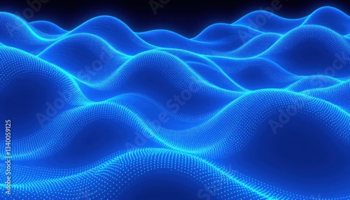 Dynamic Abstract Waves, Digital Art, Virtual Environment, Background Design, Neon Blue Curves