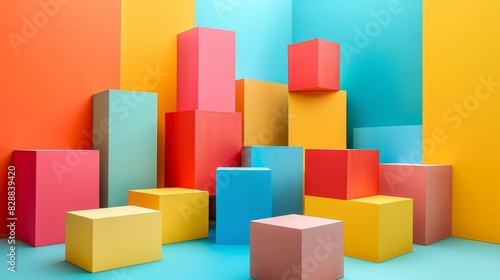 Dynamic Arrangements of Vibrant Three-Dimensional Colorful Blocks in Playful Photography