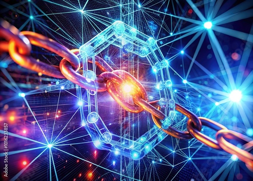 Dynamic Blockchain Icon with Futuristic Elements for Technology and Finance Industries