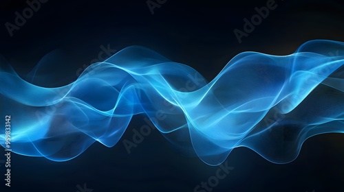 Dynamic blue light trails curve through a dark, futuristic landscape, creating a sense of speed and motion. The glowing streaks against the black background evoke themes of technology, innovation.