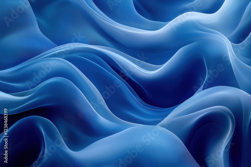 Dynamic blue silk-like waves with fluid flowing movement, abstract artistic composition