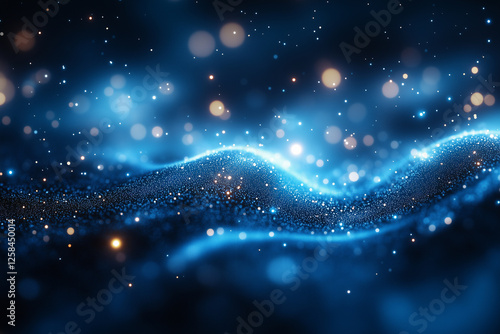 Dynamic blue waves with shimmering particles creating a mesmerizing visual experience in a dark background
