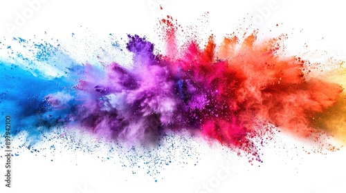 Dynamic burst of colorful powder on a pristine white background, explosive art