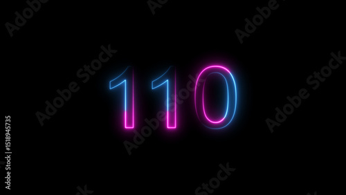 Dynamic circular and glowing neon number 110 illustration . on a black background. and creating a stunning 4k illustration .