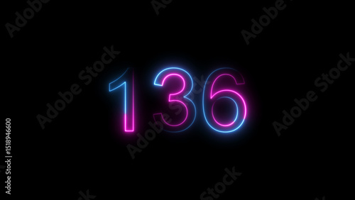 Dynamic circular and glowing neon number 136 illustration . on a black background. and creating a stunning 4k illustration .
