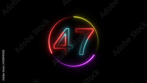 Dynamic circular and glowing neon number 47 illustration . on a black background. and creating a stunning 4k illustration .