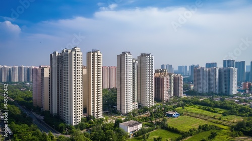Dynamic City Angle View Capturing the Urban Landscape from a Unique Perspective. The Image Showcases Skyscrapers, Streets, and Buildings,