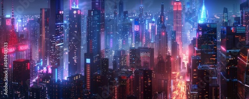 Dynamic cityscape with neon lights and skyscrapers, 4K hyperrealistic photo