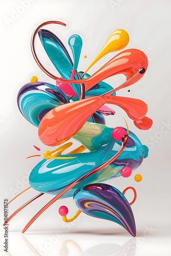 Dynamic color shapes and lines abstract composition with flowing liquid forms on a white background template for design banner flyer or presentation vector illustration
