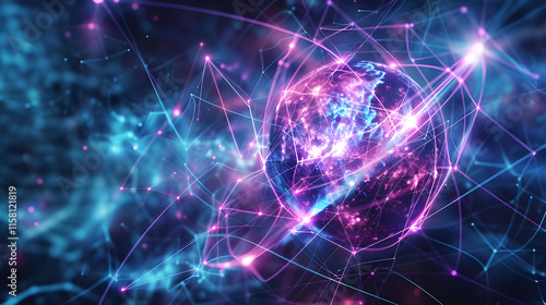 Dynamic Conceptual Visualization of Electron with Energetic Trajectory and Abstract Quantum Aura in Electric Blue and Purple
