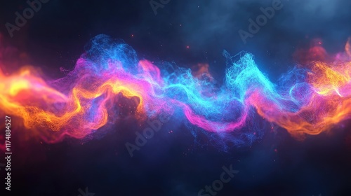 Dynamic D lines forming a wave-like structure, glowing softly with vibrant neon colors over a dark canvas.