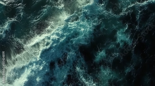 Dynamic Dance of Ocean Waves: Nature's Symphony in Turquoise and Deep Blue Hues Captured from Above, Evoking Serenity and Power.