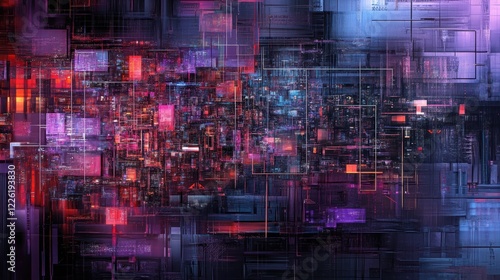 Dynamic digital art composition abstract cityscapes modern graphic design futuristic environment wide angle viewpoint
