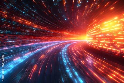 Dynamic Digital Data Tunnel with Vibrant Light Trails for Futuristic Technology Designs
