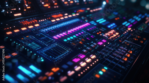 Dynamic Digital Design Featuring Vibrant Waveforms, Sound Spectrums, and Luminous Graphics, Ideal for Sound Engineering, Music Technology, and Multimedia Presentations