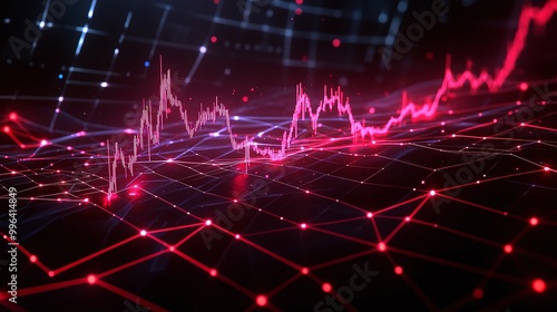 Dynamic digital graph showcasing a fluctuating data trend with vibrant red lines on a dark background.