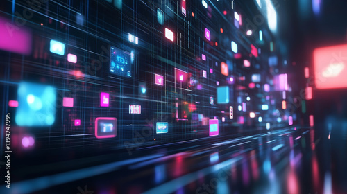 Dynamic digital landscape futuristic technology visualization virtual space 3d graphics immersive environment abstract concept