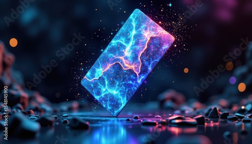 Dynamic electric phone in a cosmic environment visual art futuristic abstract lighting