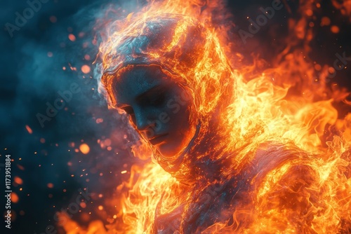 Dynamic Fantasy Character with Fire and Lightning Powers in Anime Style