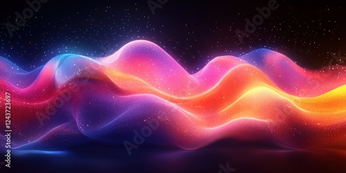 Dynamic Flowing Abstract Wave Lines Pattern in Vibrant Blue Green Gradient Light on Black Background