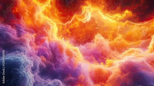 Dynamic fluid flow with bright orange, red, and purple tones in a digital space.