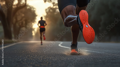 Dynamic Focus, Runner's Foot Striking Asphalt During an Intense Cardio Workout Routine