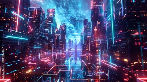 Dynamic Fusion of Neon Cityscapes and Futuristic Tech Art Imagery