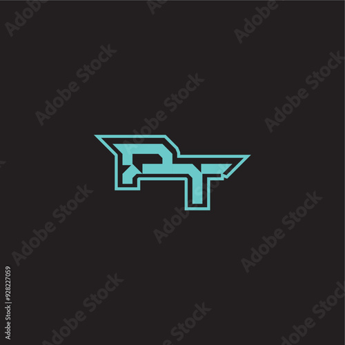 dynamic gaming monogram logo sporty and bold concept PT blue esport letter