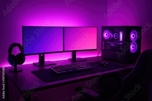 Dynamic gaming setup with colorful lighting home office digital art modern eye-level creative