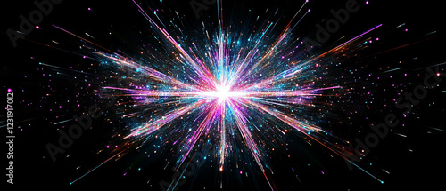 Dynamic geometric spark patterns with a central clear area on a black background