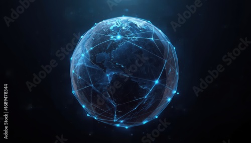 Dynamic global network connecting the world with glowing blue digital data streams