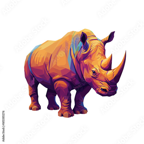 Dynamic Illustration of a Rhinoceros in Vibrant Colors, Wildlife Art, Digital Design, Jungle Setting, Creative Viewpoint