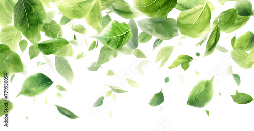 Dynamic Leaves Blowing in the Wind on White Background - Nature Concept