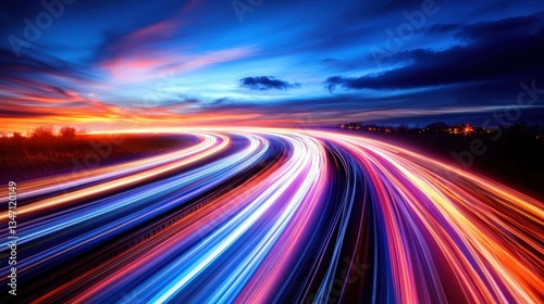 Dynamic light trails at sunset on a highway long exposure photography vibrant atmosphere
