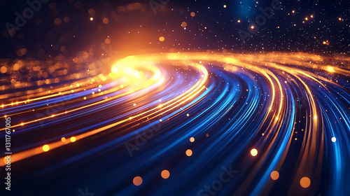 Dynamic light trails create mesmerizing flow of colors, merging into central hub, evoking sense of motion and energy
