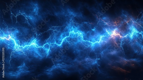 Dynamic Lightning Storm Surrealism with Vibrant Blue Lightning and Dark Misty Background
