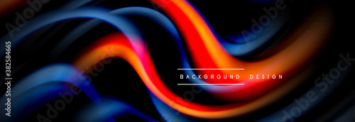 Dynamic motion abstract background. Color blurred stripes on black. Wave liquid lines poster. Vector illustration