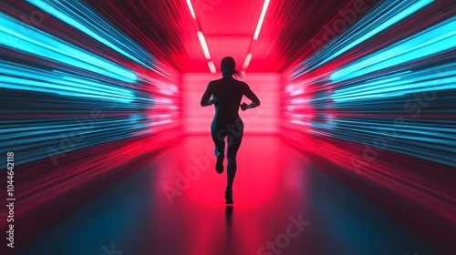 Dynamic Movement Through a Neon Cyberpunk Corridor Invokes a Sense of Speed and Freedom. Stronger Every Day Concept