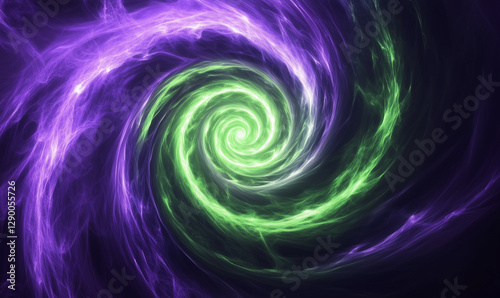 Dynamic neon green and electric purple spiral radiating vibrant energy in a mesmerizing circular pattern.