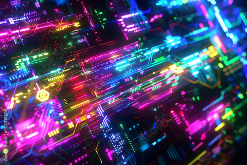 Dynamic Neon Tech Brushes Reflecting Futuristic Digital Patterns and Artistic Innovation